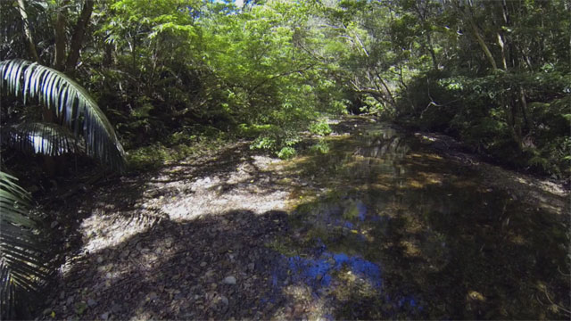 ラジコンヘリを使って是非撮影してみたかったのが、山原(やんばる=沖縄本島北部)の渓流環境。 今回のリュウキュウハグロトンボの撮影の合間にチャレンジしてみました。 以前、ラジコン戦車にビデオカメラを搭載しての映像が「ヘビの眼」ならば、この映像は「トンボの眼」でしょうか? 風もなく、ビデオ映像がコンニャク状態になることもなく、なかなかのクオリティ映像を得られました。