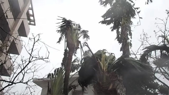 目に入ったようですが、雨雲レーダーを見ると、台風の南半分は雨雲がほとんどありません。 どうも吹き返しもそれ程ではなく、ピークは過ぎ去ったようです。 映像は、午後2時過ぎの事務所の裏庭の様子です。