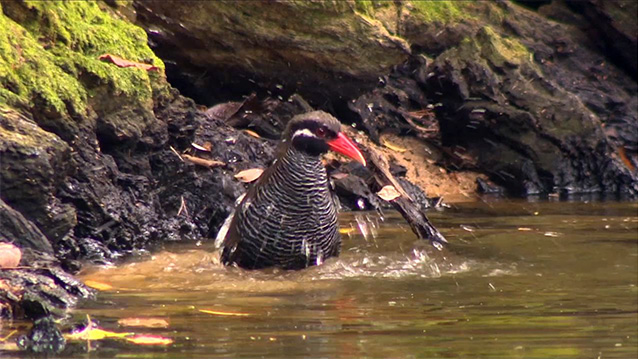 ヤンバルクイナの水浴びの動画です。 このところ、11月に入っても最高気温30℃程の日が続いています。 だからといって、ヤンバルクイナは暑いから水浴びをするわけではありません。 真冬でも、頻度は落ちますが見られる行動です。 亜熱帯の気候の中。全身羽毛に覆われていては、寄生虫の格好のターゲットになってしまいます。